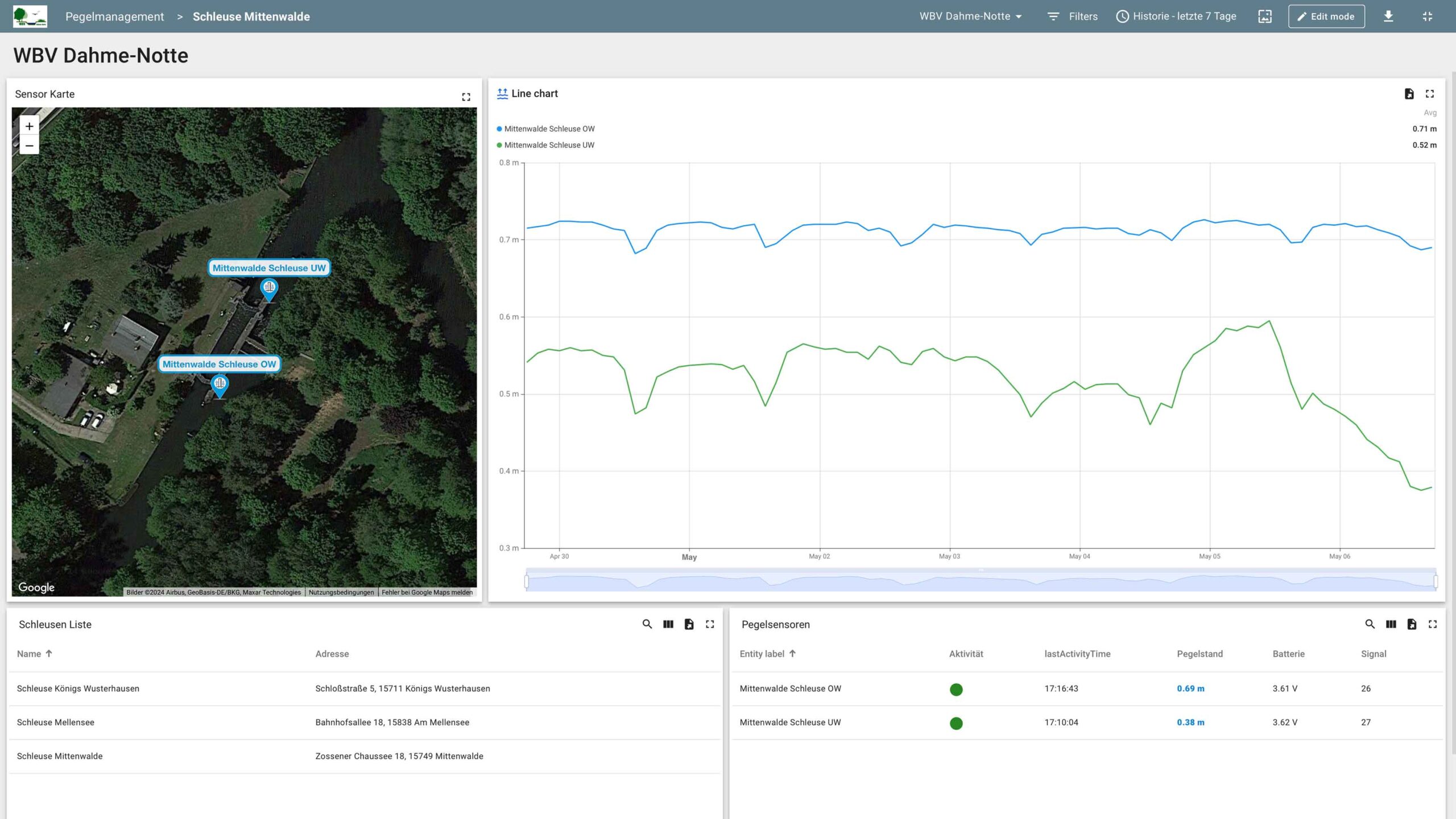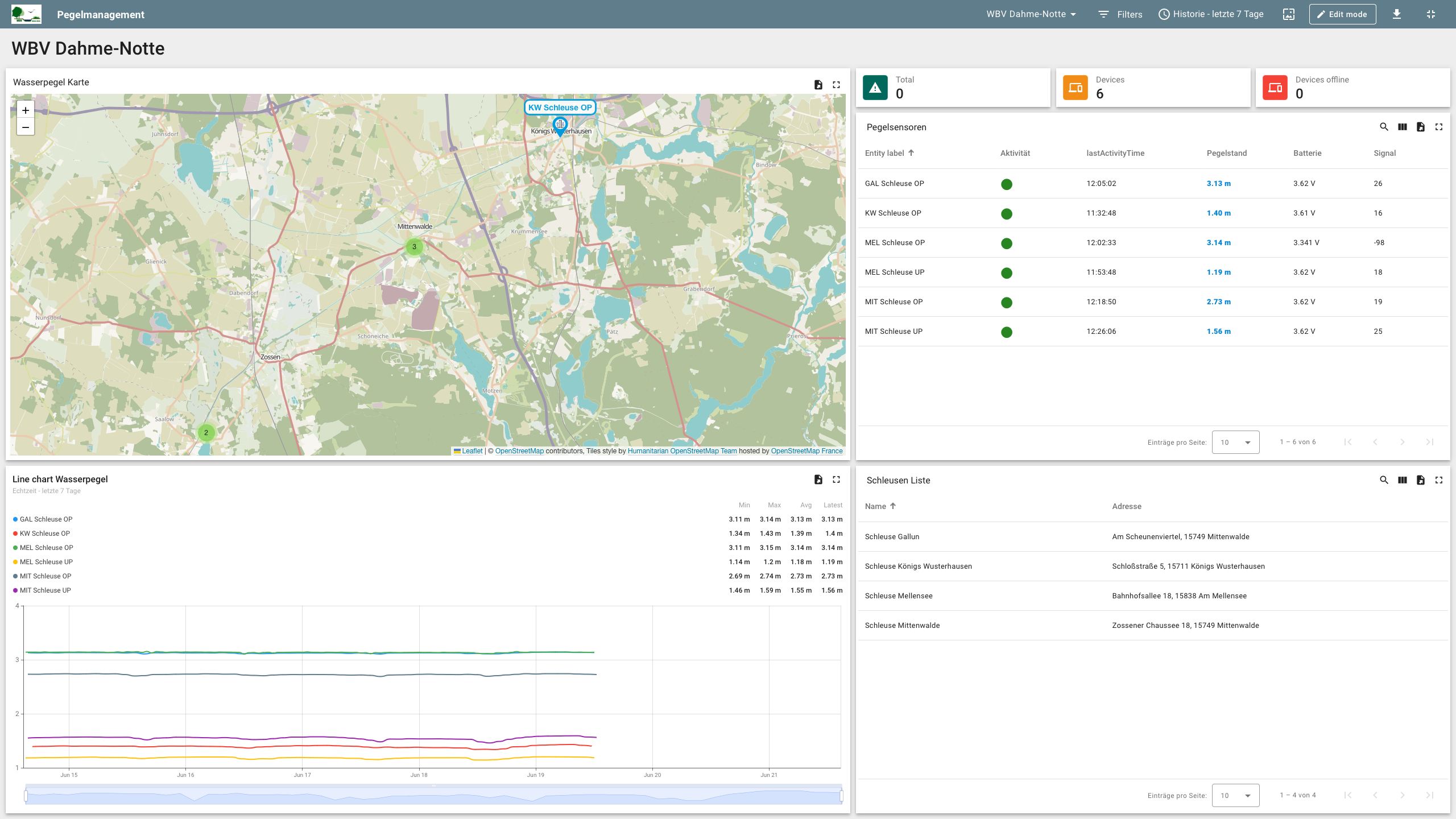Die Mitarbeiter des WBV „Dahme-Notte“ sind begeistert. Sie haben nun einen Live-Einblick in ihre Gewässer und können Schwankungen im Wasserstand in Echtzeit beobachten. Bereits nach vier Monaten Laufzeit des Projekts konnten wir interessante Wasserschwankungen entdecken, deren Ursachen nun erforscht werden.