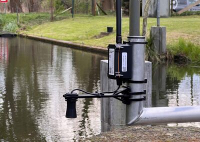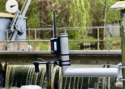 In unserem Projekt haben wir zwei Hauptziele verfolgt. Erstens wollten wir alternative Methoden finden, um den Pegelstand von Gewässern zu ermitteln. Hierfür setzen wir auf Ultraschallsensoren, die nicht nur präzise, sondern auch langlebig und kostengünstig sind. Diese Sensoren haben wir entlang der Schleusen des Nottekanals und am Gallun Kanal installiert. Ein wichtiger Aspekt dabei war es, die Sensoren so zu platzieren, dass sie vor Beschädigungen durch Wasserfahrzeuge geschützt sind und dennoch genaue Messungen liefern. Dazu haben wir spezielle Halterungen mittels 3D-Druck gefertigt, die witterungs- und UV-beständig sind.